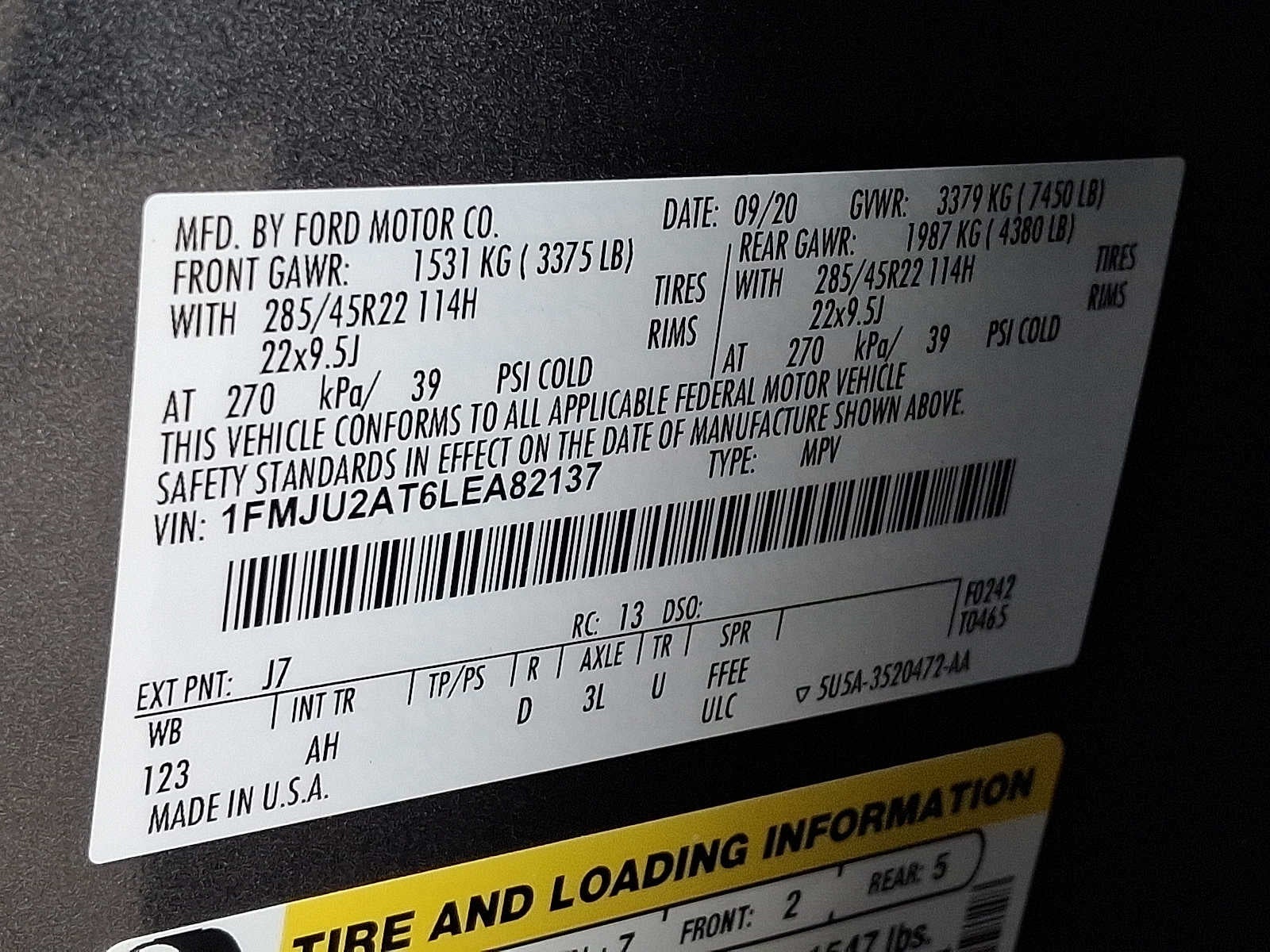 - Front Tire Size: P275/55HR20